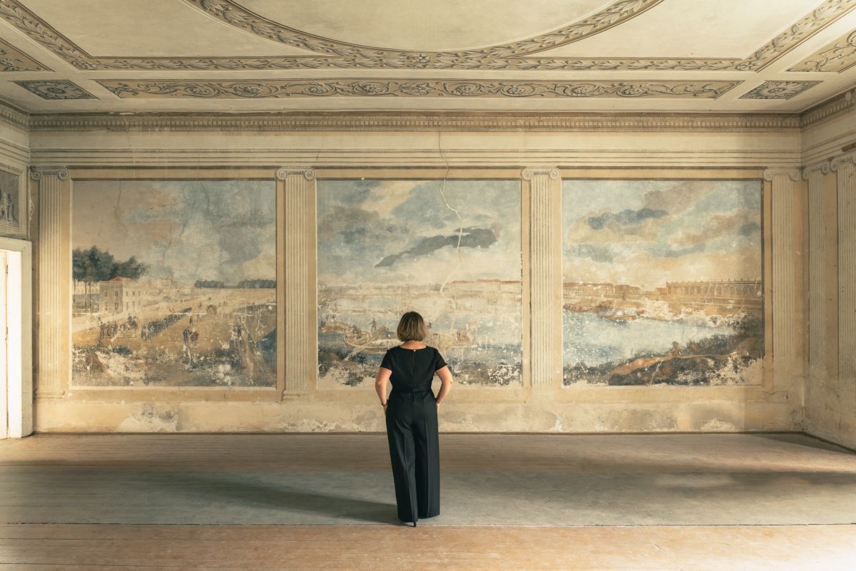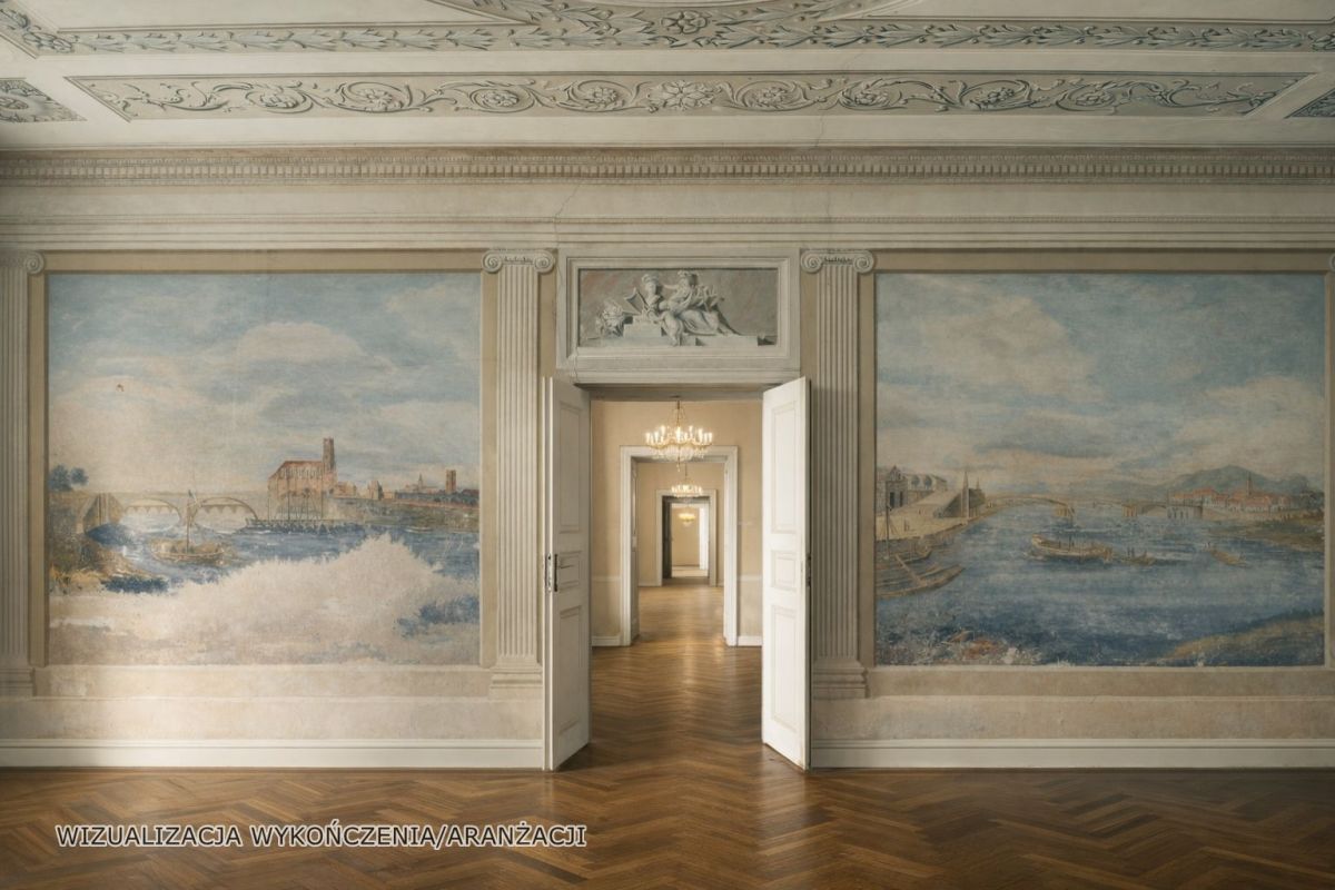 wyjątkowa zabytkowa dekoracja malarska z początku XIX wieku. W dwóch salach polichromia ścienna z pejzażami miast oraz scenami symbolicznymi i rodzajowymi. W supraportach uwidocznione są podobizny wybitnych reprezentantów polskiej nauki doby staropolskiej. W salonach na ścianach widnieje osiem widoków okolic Paryża, a w gabinecie znajdują się spersonifikowane cztery pory roku oraz sceny rodzajowe o patriotycznej wymowie z ułanami księcia Józefa Poniatowskiego.