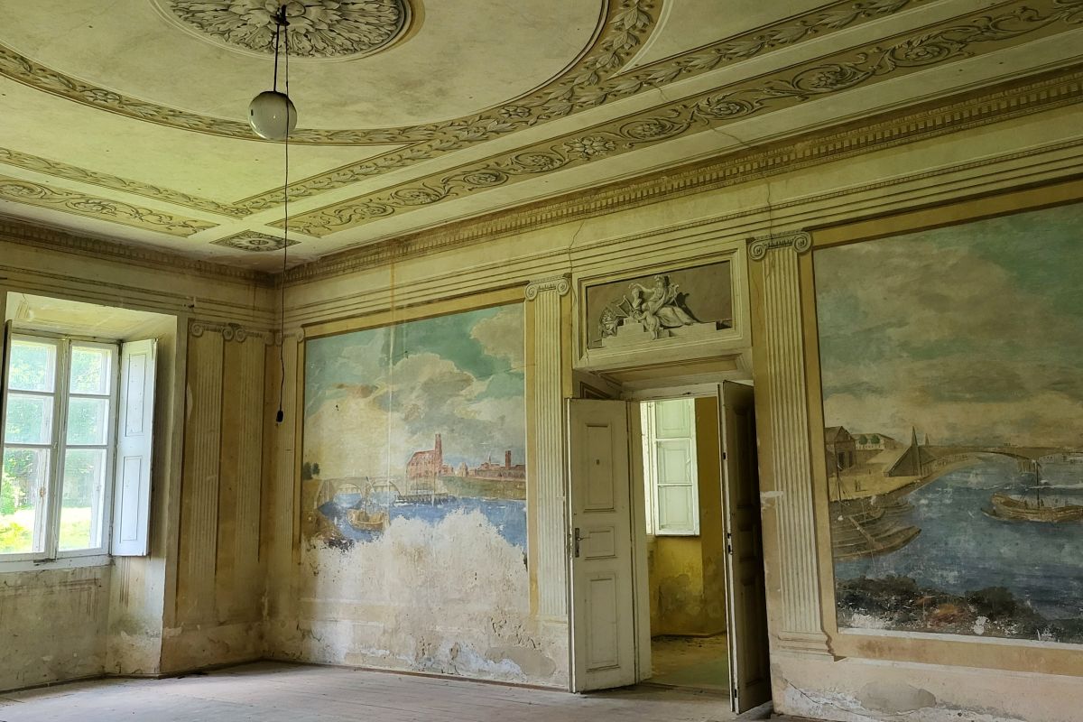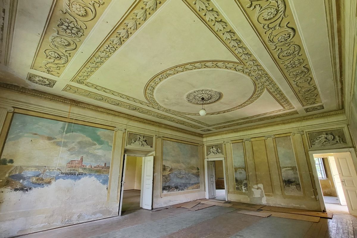 wyjątkowa zabytkowa dekoracja malarska z początku XIX wieku. W dwóch salach polichromia ścienna z przedstawieniami miast, scen symbolicznych i rodzajowych. W supraportach uwidocznione są podobizny wybitnych reprezentantów polskiej nauki doby staropolskiej. W salonach na ścianach widnieje osiem widoków Paryża, a w gabinecie znajdują się spersonifikowane cztery pory roku oraz sceny rodzajowe o patriotycznej wymowie z ułanami księcia Józefa Poniatowskiego.