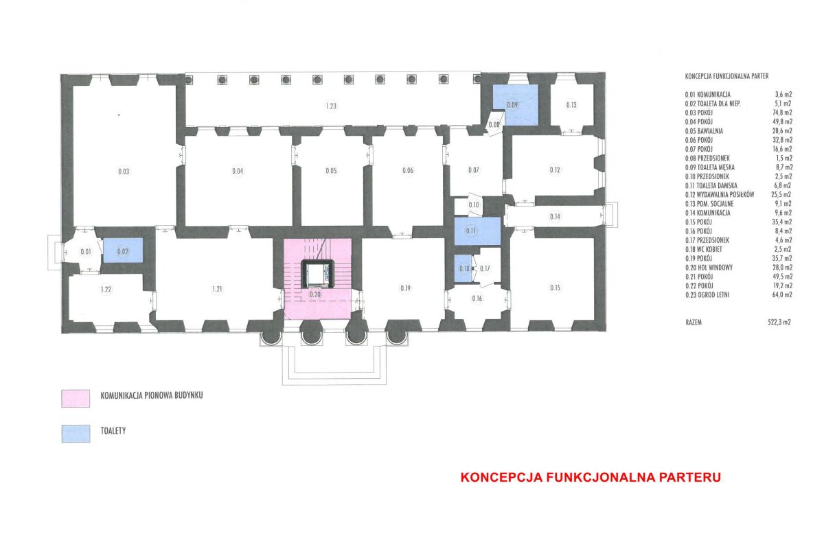 Została stworzona inwentaryzacja budynku dworu wraz z budynkami gospodarczymi oraz zaproponowana koncepcja funkcjonalno-przestrzenna pozwalająca stworzyć przestrzeń usługowo mieszkalną o powierzchni użytkowej 874 m2. Zainteresowanym klientom udostępniamy tą dokumentację.