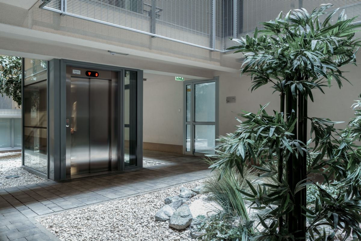 Na dachu budynku znajduje się dostępny dla wszystkich mieszkańców widokowy taras.