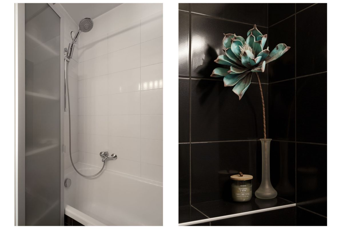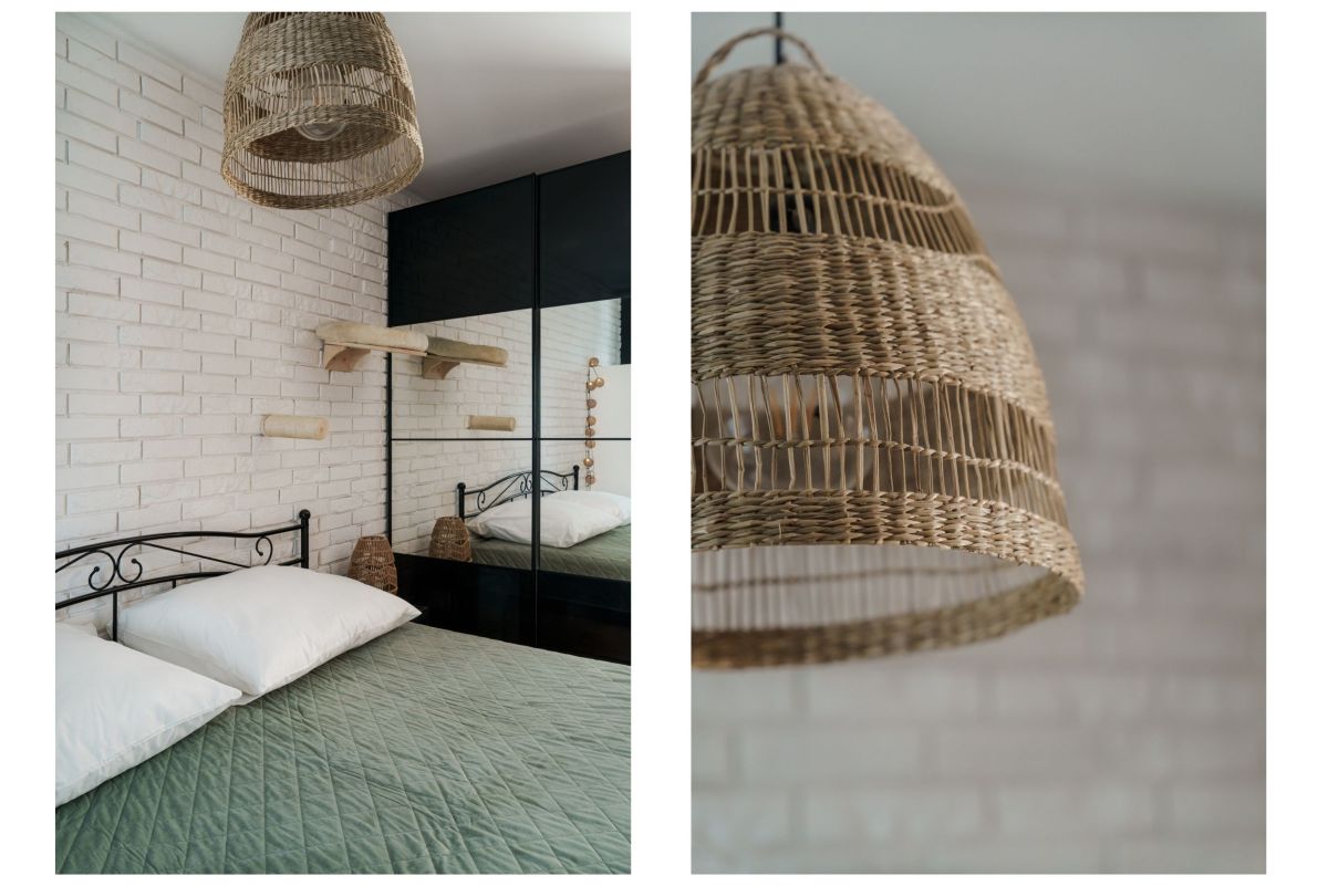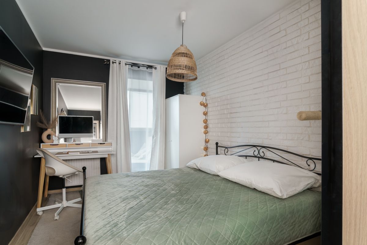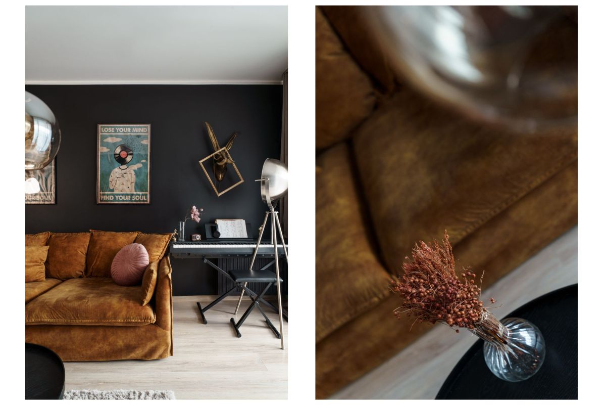 Wnętrze zaprojektowane zostało z wyczuciem stylu i charakterem, daleko odbiegającym od typowych, białych aranżacji. Drewniane okna i ciepłe panele podłogowe wprowadzają przytulny nastrój, a autorski projekt właścicielki dodaje całości artystycznego sznytu. To mieszkanie, które od razu przyciąga wzrok i zapada w pamięć!